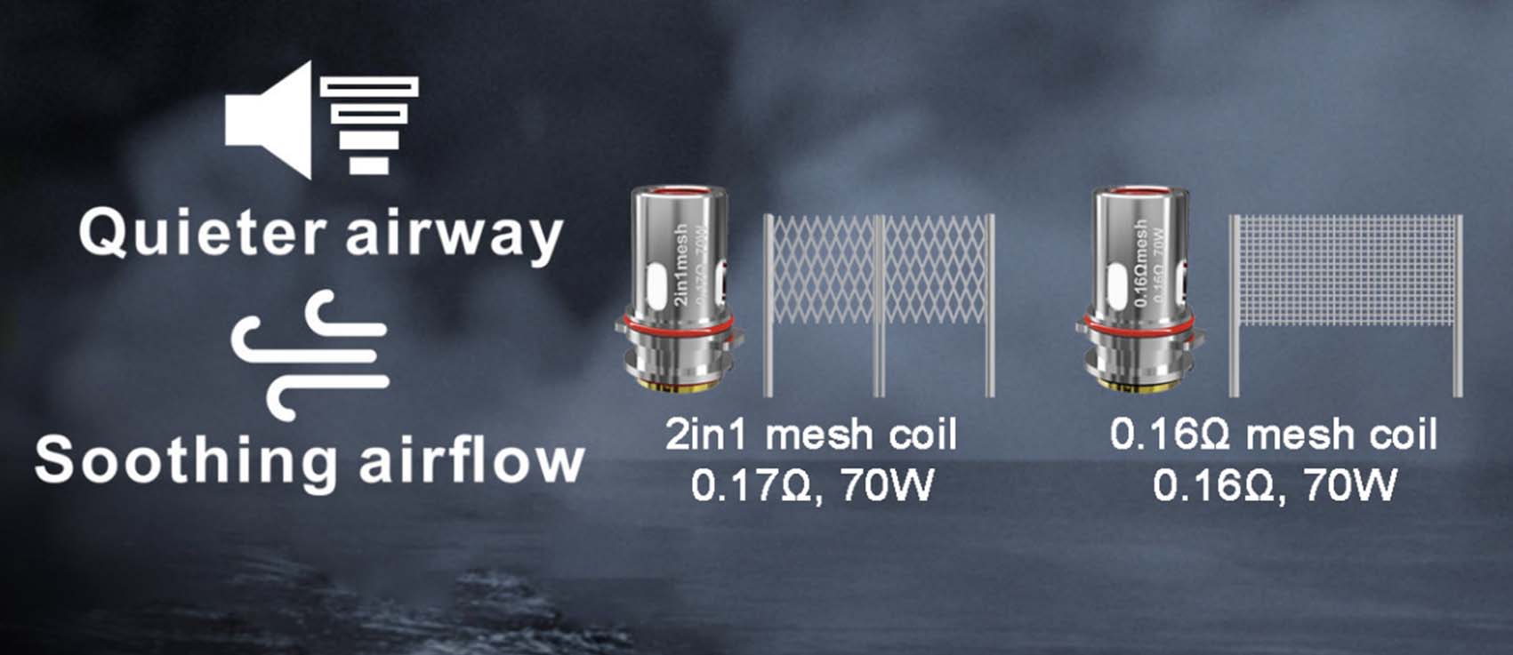 The all new HorizonTech Sakerz coils with its improved quieter airway and and soothing airflow.
