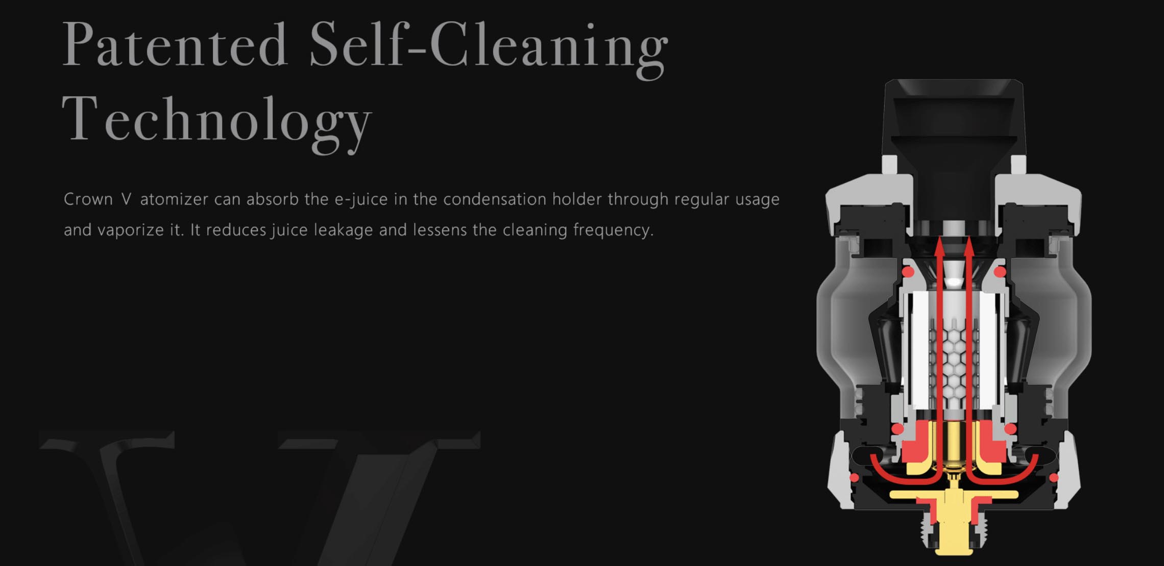 The Crown V atomizer can absorb the e-juice in the condensation holder through regular usage and vaporize it. It reduces juice leakage and lessens the cleaning frequency.