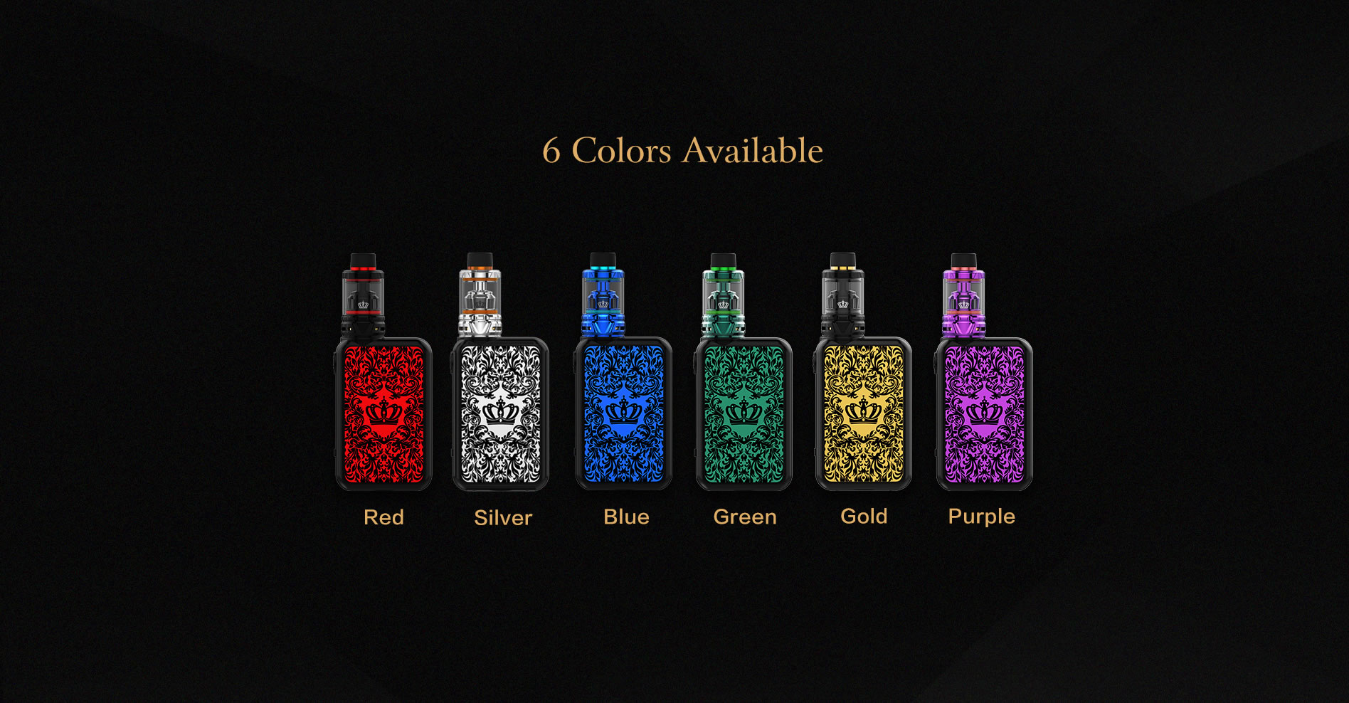 The Uwell Crown 4/IV Kit features exquisite design and fashionable looking. It consists of the a Crown IV Mod and a Crown IV Tank. It is powered by dual 18650 batteries with the max output of 200W. It equipped with the new generation of UWELL circuit board for stable and safe vaping. The protruding fire button provides a comfortable grip. The UWELL Crown 4 Tank features 6ml e-juice capacity with patented self-cleaning technology that can lessen the cleaning frequency and reduce juice leakage. It is compatible U1 and U2 coil for better flavors. And it is also compatible with a dual SS904L coil. It comes with top-filling design and adjustable bottom airflow system. The Crown IV Kit is a wonderful vaping device that can satisfy great vaping experience and visual enjoyment.